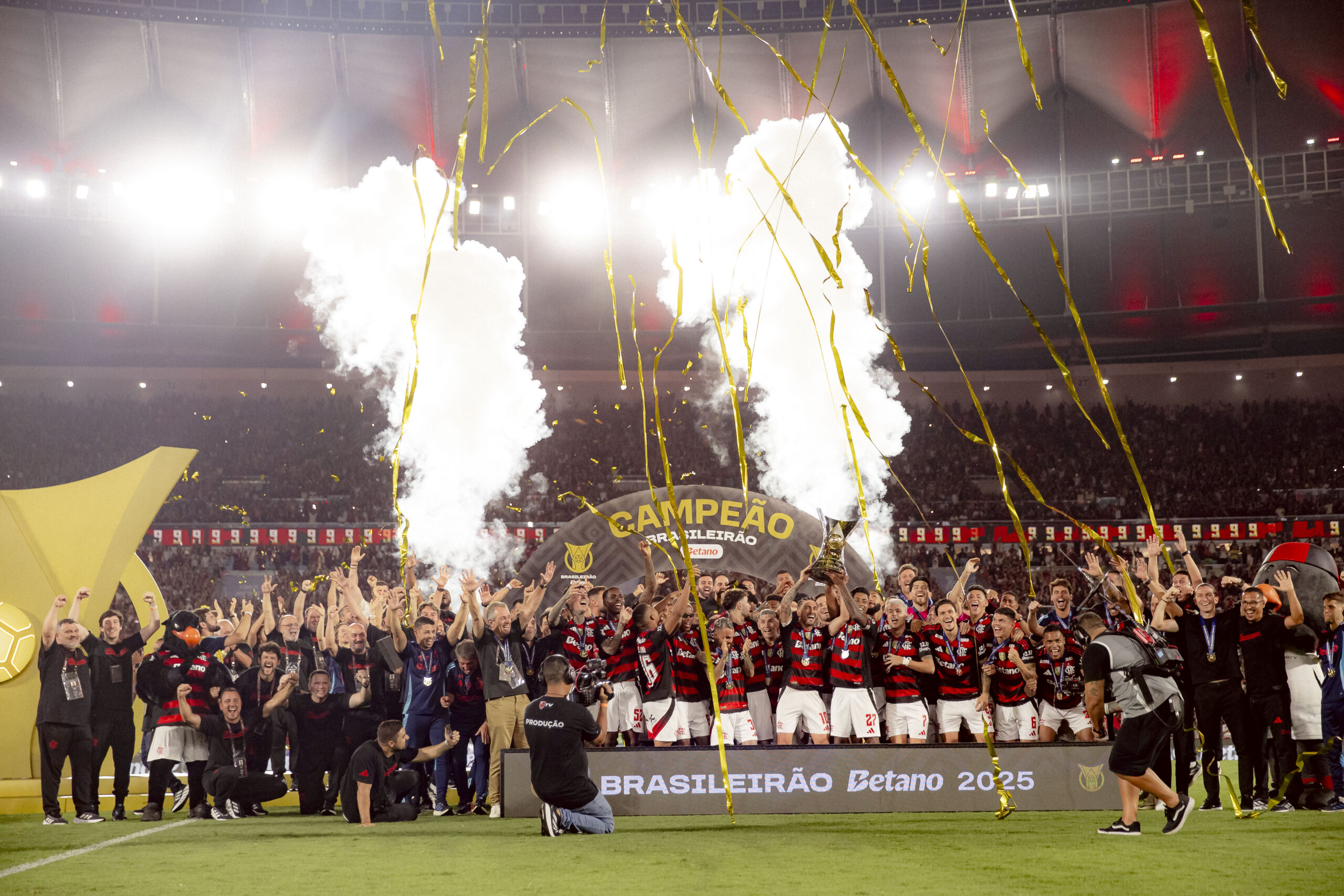 Flamengo comemora a conquista do Campeonato Brasileiro de 2025. Foto:Adriann Fontes/Flamengo