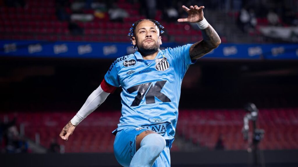 Neymar jogador do Santos comemora gol diante do Juventude – Foto: Reprodução/X